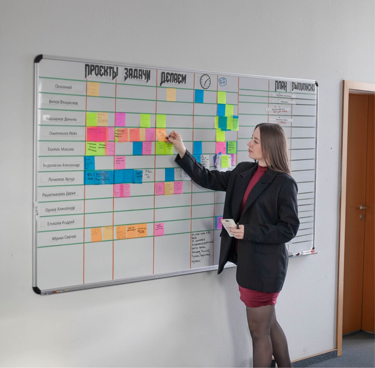 Мы используем Scrum — динамичный формат командной работы, ставим чёткие задачи на короткие периоды и регулярно обсуждаем результаты, чтобы работать прозрачно и становиться лучше